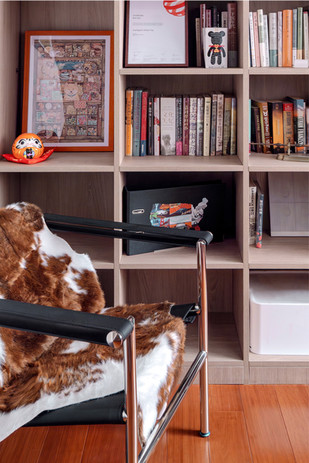 The private space was redesigned for comfort and introspection. The adjacent bedroom became a study connected to the master bedroom, forming a suite. A previously unused balcony next to the master bedroom was transformed into a tearoom, allowing the homeowner to enjoy solitude without leaving personal space.